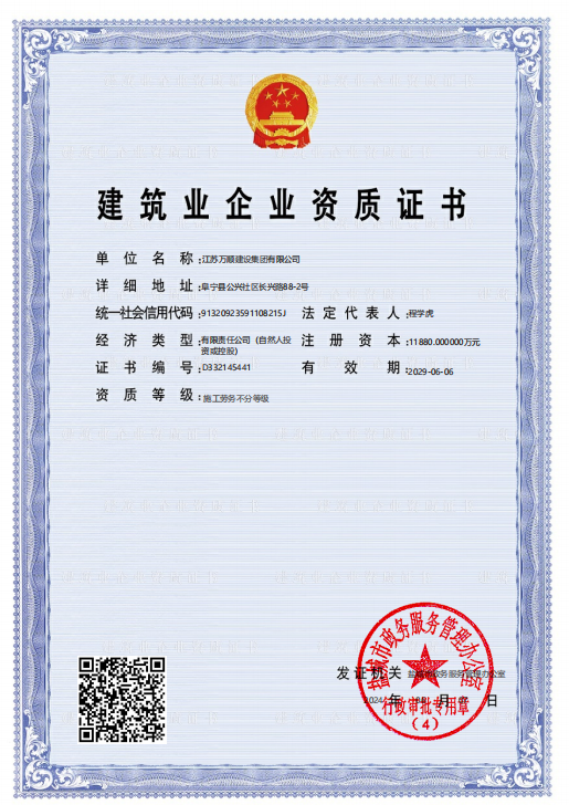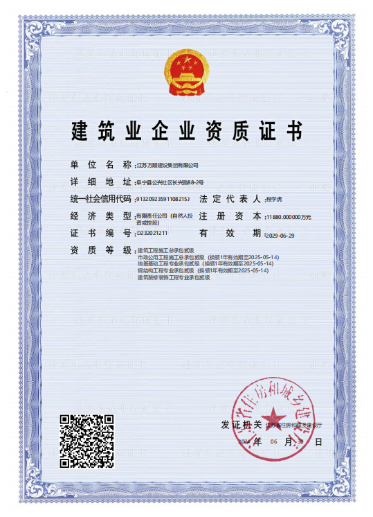 江蘇萬順建設集團于2012年2月經(jīng)鹽城市阜寧縣工商行政管理局批準設立,目前已形成建筑施工總承包、建材銷售等綜合性、多元化企業(yè),也是一家擁有現(xiàn)代經(jīng)營管理模式、追求可持續(xù)發(fā)展的企業(yè)。